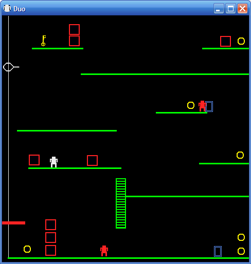 Duossa on tavoitteena kahta pelihahmoa ohjaamalla kerätä kaikki kentässä olevat keltaiset kolikot. Pelin erikoisuutena on ohjaus, sillä pelihahmot liikkuvat ruudulla samanaikaisesti. Tästä johtuen pelaaja joutuu kiinnittämään huomiota kumpaankin ohjattavaan pelihahmoon. Kentät koostuvat kevyistä puzzleista, jossa pelihahmot auttavat toistensa etenemistä. Tarkemmat ohjeet löytyvät aloitusruudusta.