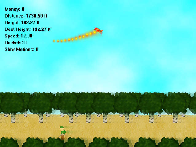 Saat pisteitä sitä mukaan, kun lennät pitkälle ja tuhoat armeijan tavaroita ja tapat sotilaita. Pisteillä voit parantaa nopeutta, kitkaa yms.